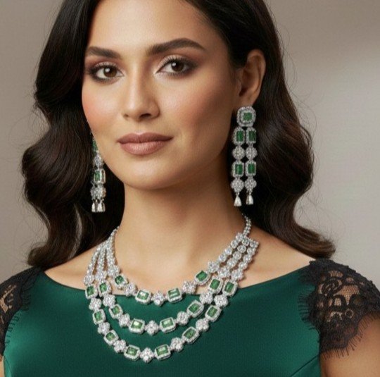 Be the first to review “Multi-Layer Emerald-Green AD Necklace Set”