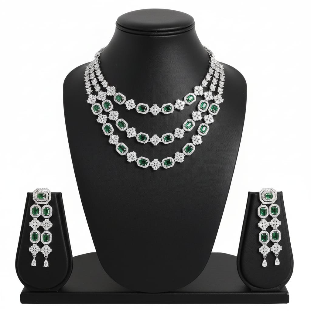 Multi-Layer Emerald-Green AD Necklace Set