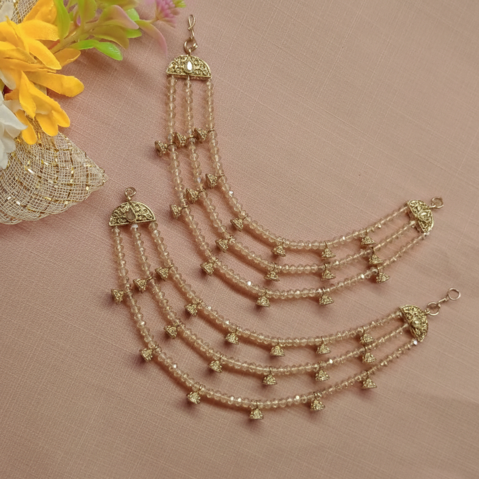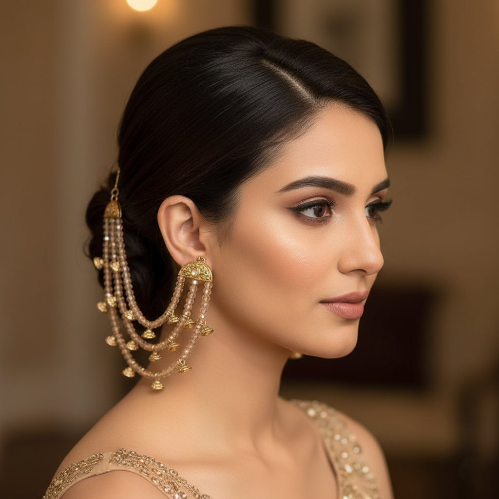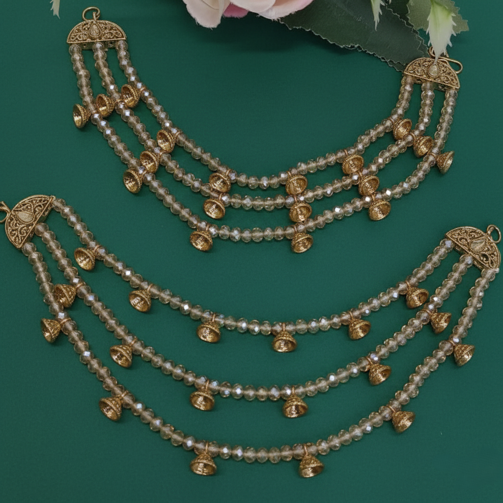 Women Gold-Tone Multi-Strand Ear Chain with Bell Charms & Beads| Lightweight Layered Jewelry for Sarees & Festive Wear