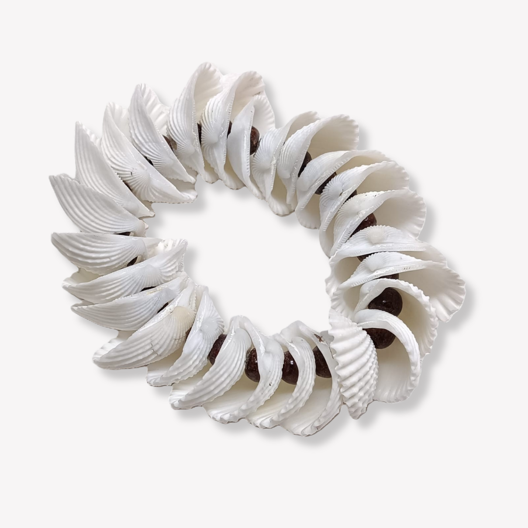 - PRODUCT DETAILS: This white seashell beaded bracelet is crafted from natural seashells arranged in a spiral pattern, accented with dark contrasting beads for a striking look. The design captures the essence of coastal beauty, offering a unique and elegant ocean-inspired style. Designed for comfort, it features a stretchable band that fits a variety of wrist sizes with ease. Ideal for both everyday wear and special occasions, this bracelet adds a serene, beachy touch to any outfit.