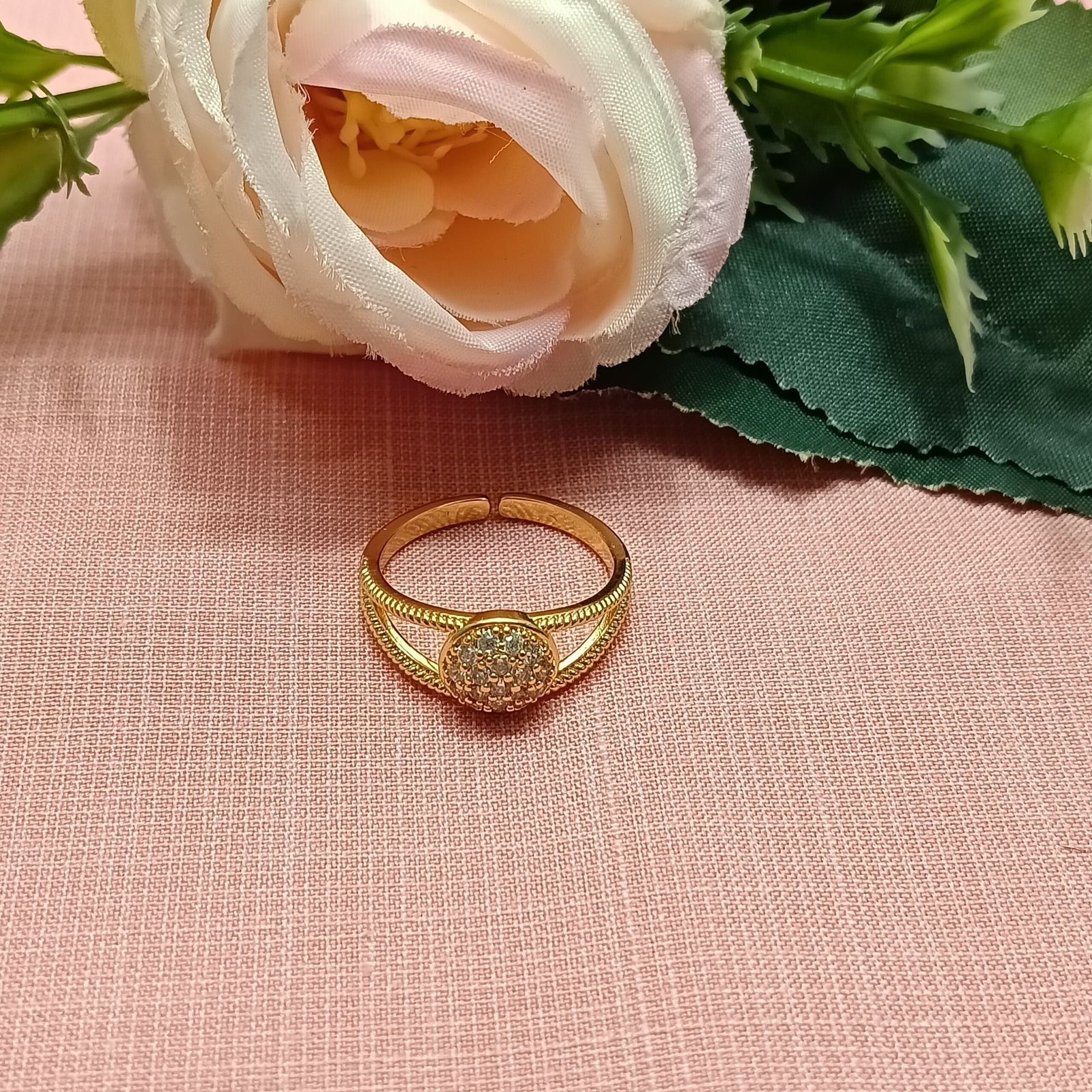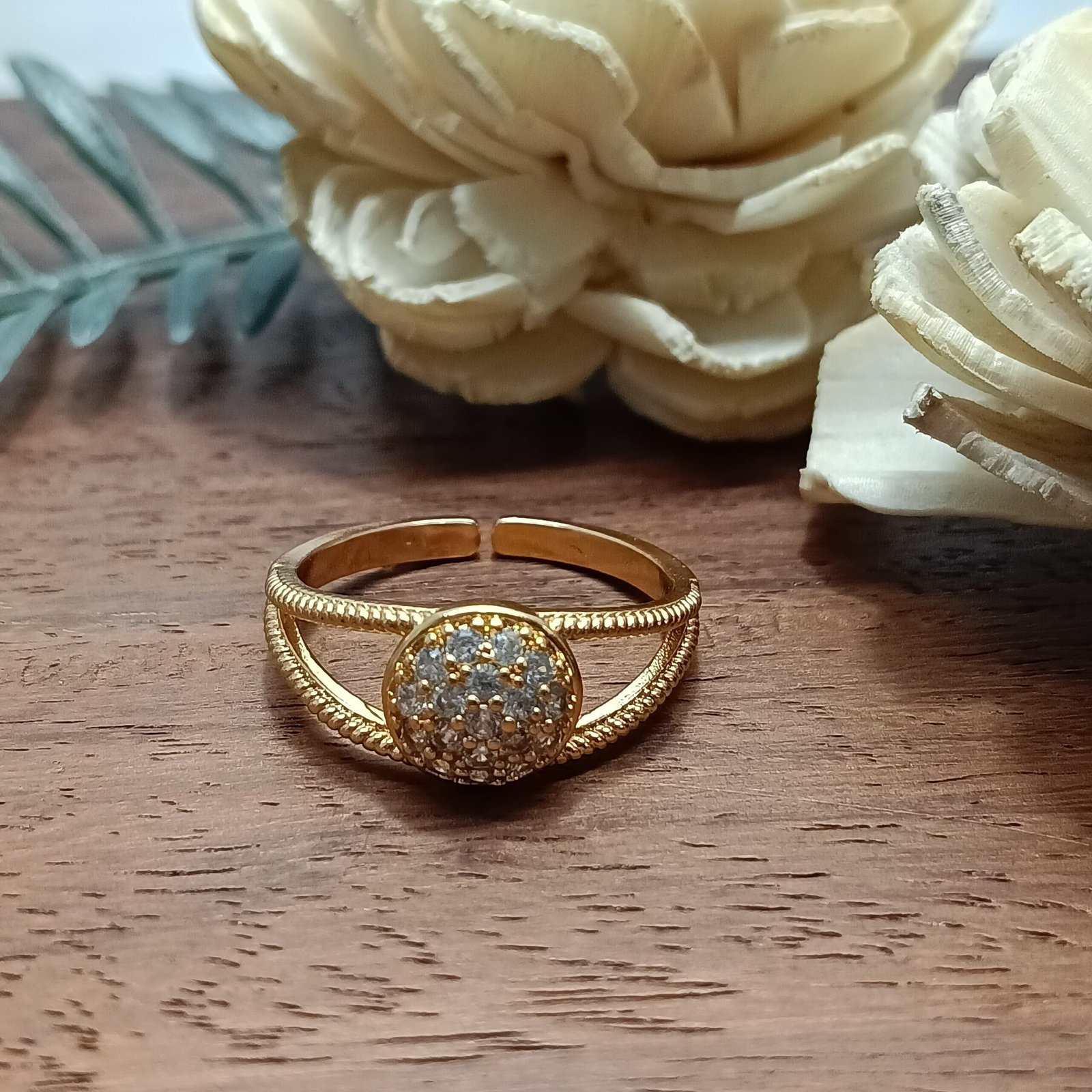 - PRODUCT DETAILS: Add a refined sparkle to your look with this beautifully crafted open-shank ring. At its center sits a circular element, encrusted with tiny, closely set stones that shimmer with every move. The double-band design curves gracefully around the finger, joining at the center for a unique, sculptural silhouette. A rope-textured band adds just the right amount of intricate detail, giving this piece a modern edge while still feeling timeless. Whether you’re dressing up or keeping things simple, this ring brings effortless elegance to any outfit.