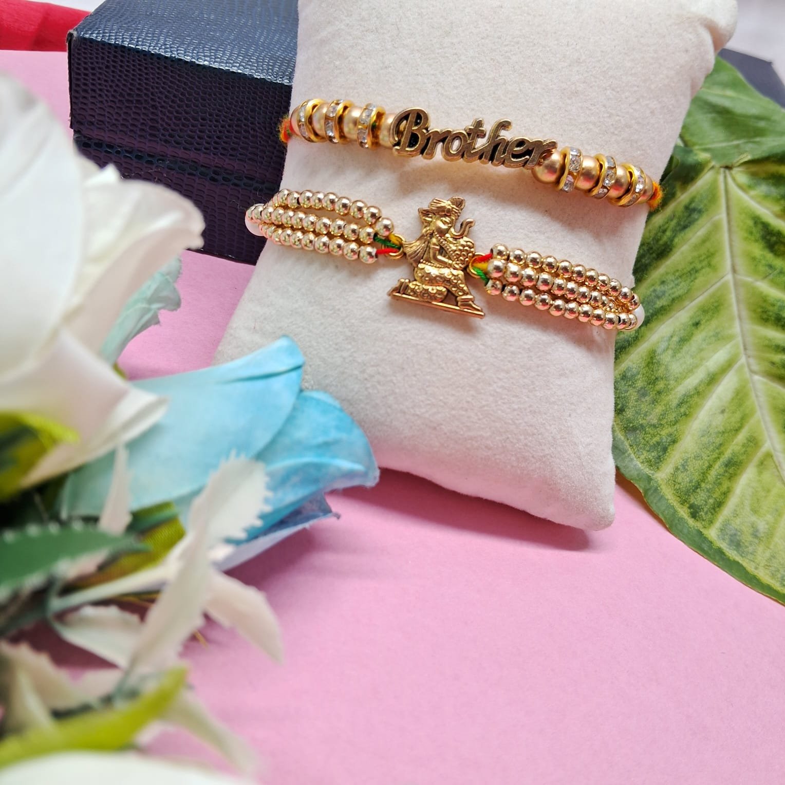 - PRODUCT DETAILS: Honor the sacred bond between siblings this Raksha Bandhan with this NIPSTec Set of 2 Designer Rakhis. Crafted with care and elegance, this set features two beautifully handcrafted rakhis—one adorned with a divine Lord Krishna charm symbolizing spiritual protection, and the other styled with a sleek ‘Brother’ charm for a personal, modern touch. The golden beads and vibrant red threads add a festive flair, while the included roli and chawal complete your Rakhi ritual with ease. Designed for comfort and style, these rakhis are perfect for expressing your love and appreciation.
