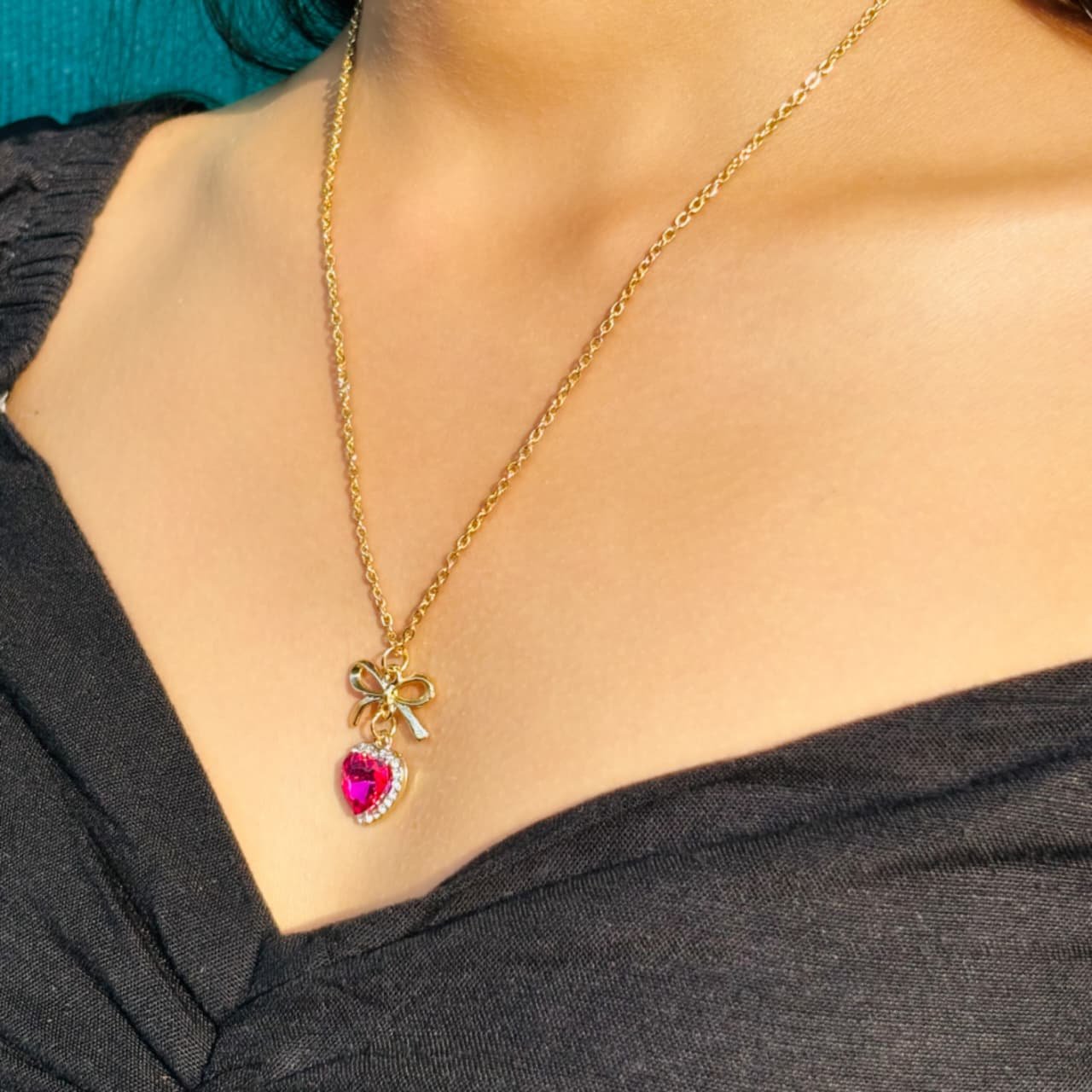 Romantic Heart & Bow Pendant Set for Women | Gold-Tone Jewelry| Romantic Fashion Set for Gifting, Casual Outfits, and Special Occasions