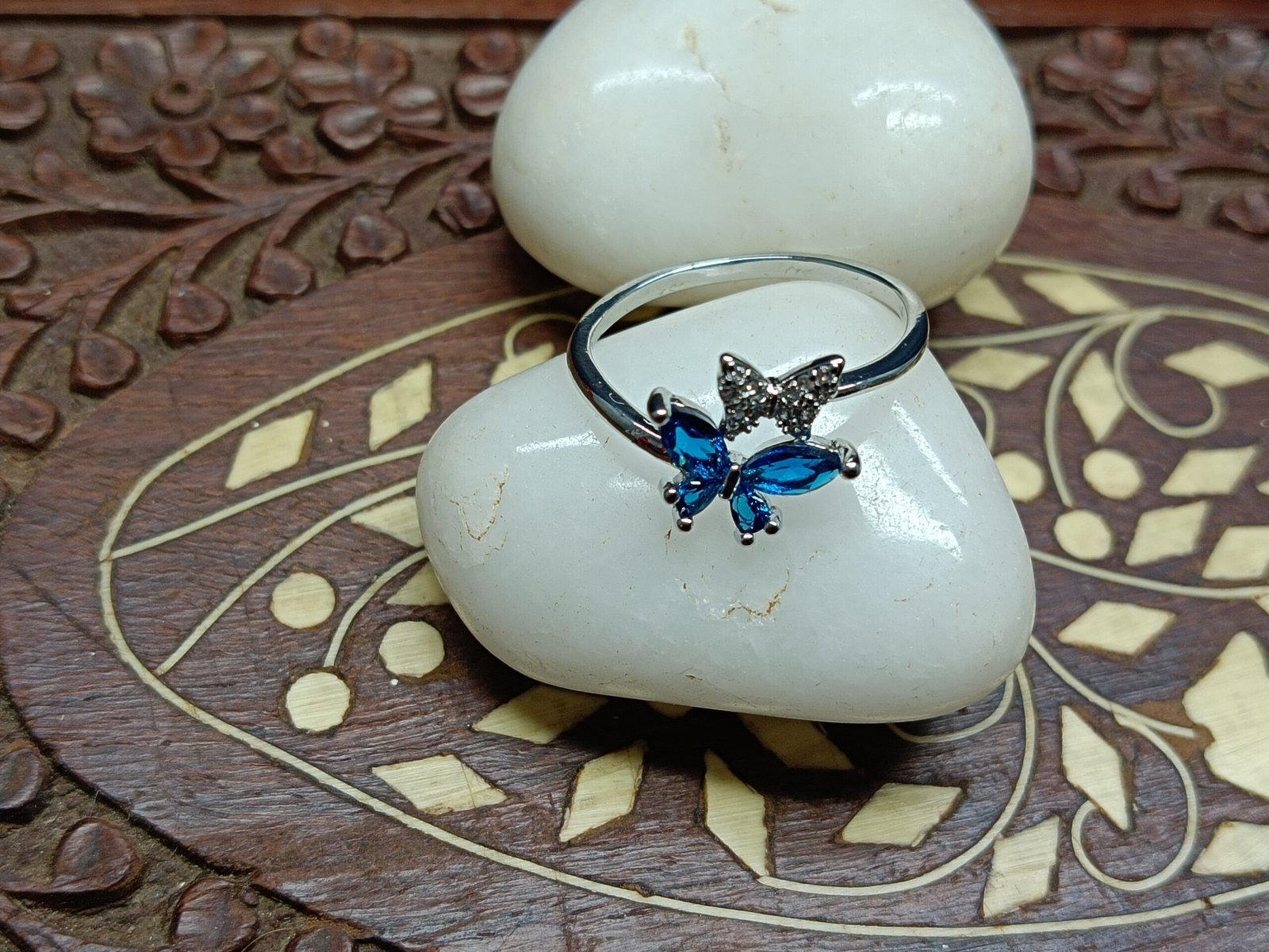 Serene Blue Butterfly Adjustable Ring
