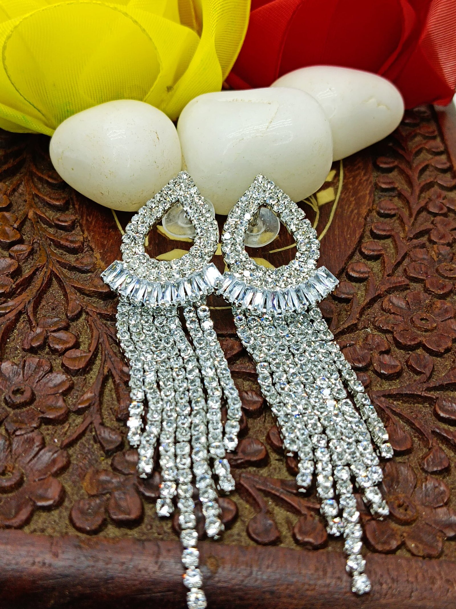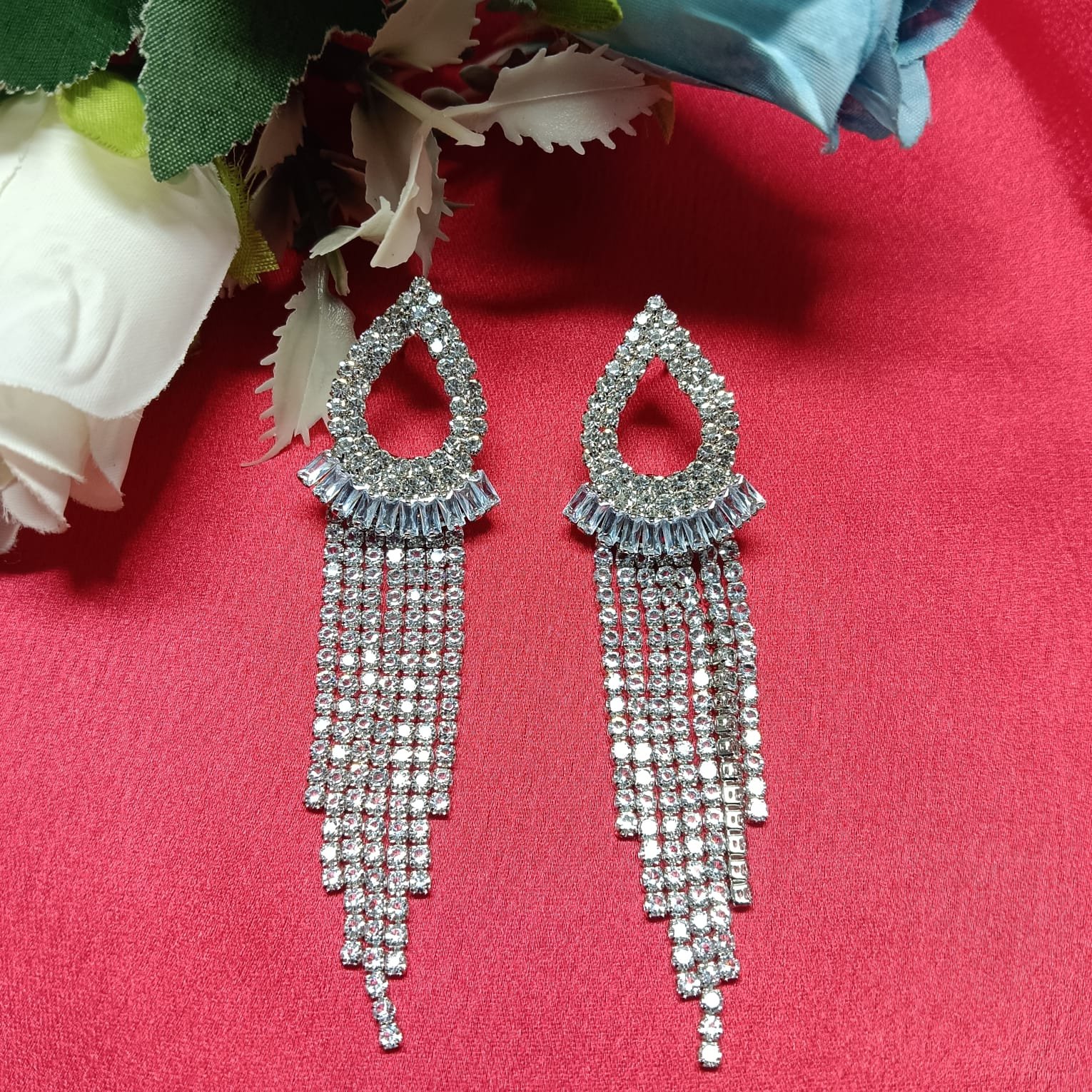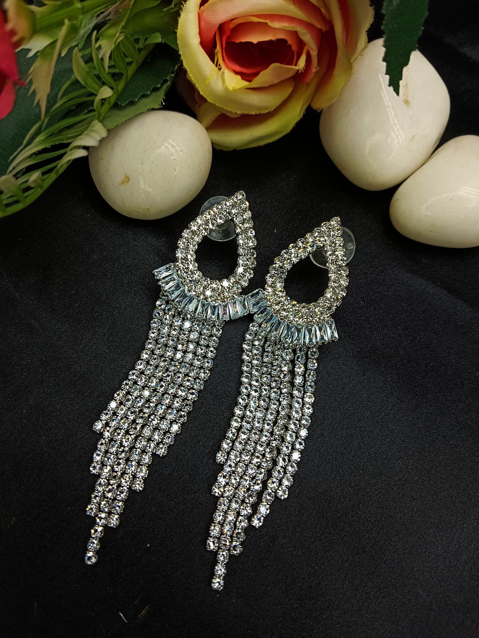 Tags: Drop and dangle earrings, Earrings for women, Eid, Eid jewelry, Navratri Jewelry, Rhinestone Earrings, Stone earrings, Tassel earrings