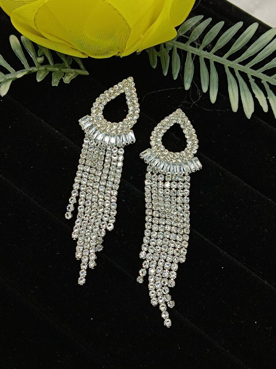 - PRODUCT DETAILS: Make a bold statement with these NIPSTec silver-plated tassel dangle earrings, designed for women who love standout accessories with a touch of elegance. These earrings feature a teardrop-shaped top embellished with shimmering imitated rhinestones, which flow seamlessly into long, cascading tassels that catch the light beautifully. Crafted from a durable alloy base and finished in a sleek silver tone, the design offers a modern, refined look. The earrings are secured with a classic post-back closure for comfortable and reliable wear. Ideal for pairing with western outfits, evening gowns, or cocktail dresses, these earrings bring sparkle and sophistication to any event or night out.