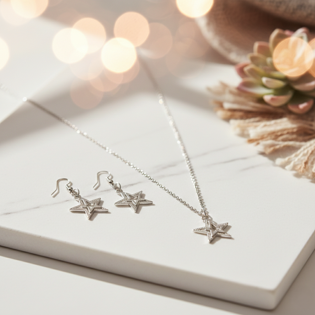 Be the first to review “Silver-Tone Star Pendant Jewelry Set” Cancel reply