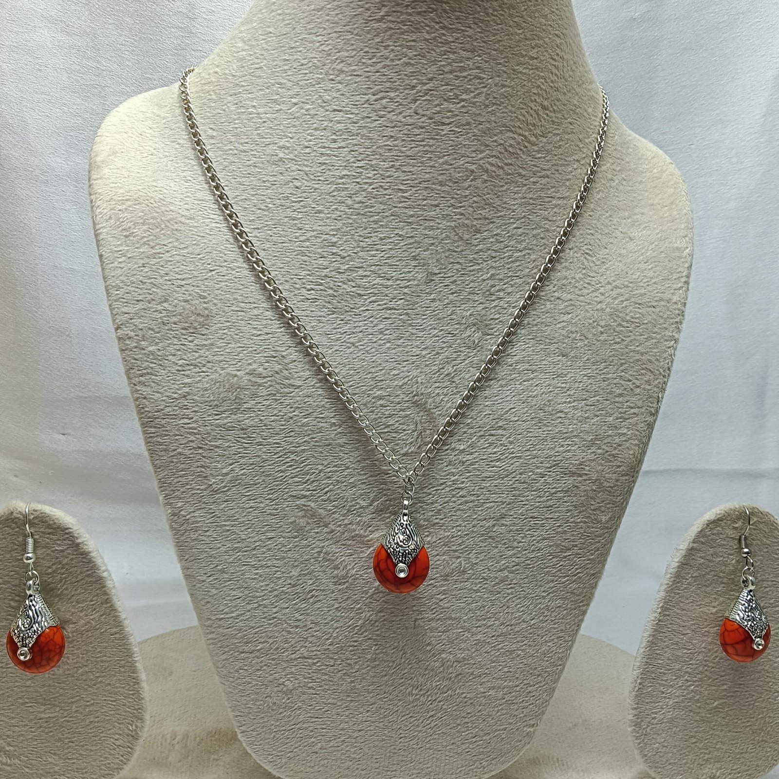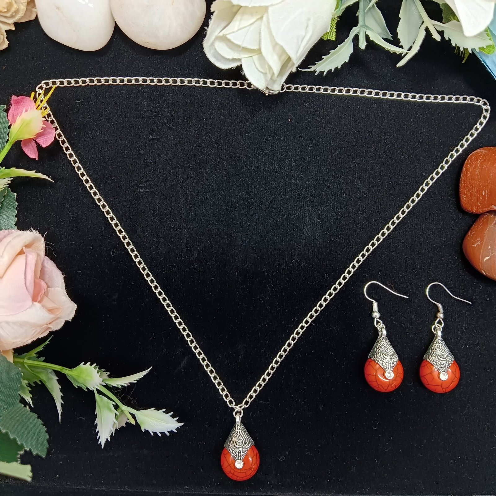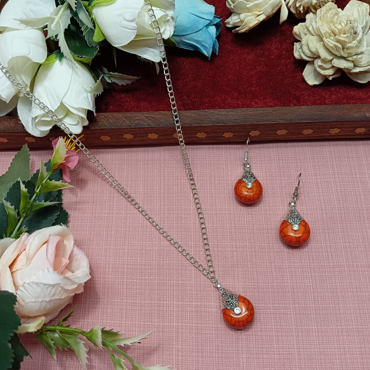 - PRODUCT DETAILS: Elevate your elegance with this stunning Silver-Toned Pendant Necklace and Earring Set, featuring vibrant orange simulated gemstones. The pendant showcases a lustrous orange stone set in a sleek silver-toned frame, suspended from a delicate chain for timeless appeal. Complementing the necklace, the matching drop earrings mirror the design with coordinating gemstones and fine detailing, creating a balanced and sophisticated look. Whether styled for festive occasions or to add a pop of color to your everyday wear, this jewelry set radiates charm, warmth, and refined beauty.