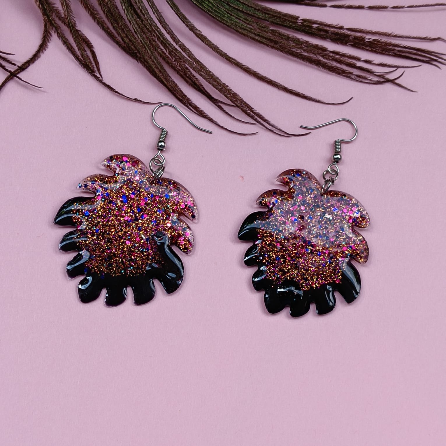 - PRODUCT DETAILS: Gracefully designed in a delicate leaf silhouette, these resin dangle earrings bring together nature’s charm with modern sparkle. Each piece is infused with glitter that catches the light beautifully, creating a shimmering effect that elevates any outfit. The lightweight resin craftsmanship makes them comfortable for extended wear, while their versatile design makes them a perfect accessory for casual outings, festive gatherings, or elegant party looks. A stylish blend of art and fashion, these earrings are sure to become a go-to favorite in your jewelry collection.