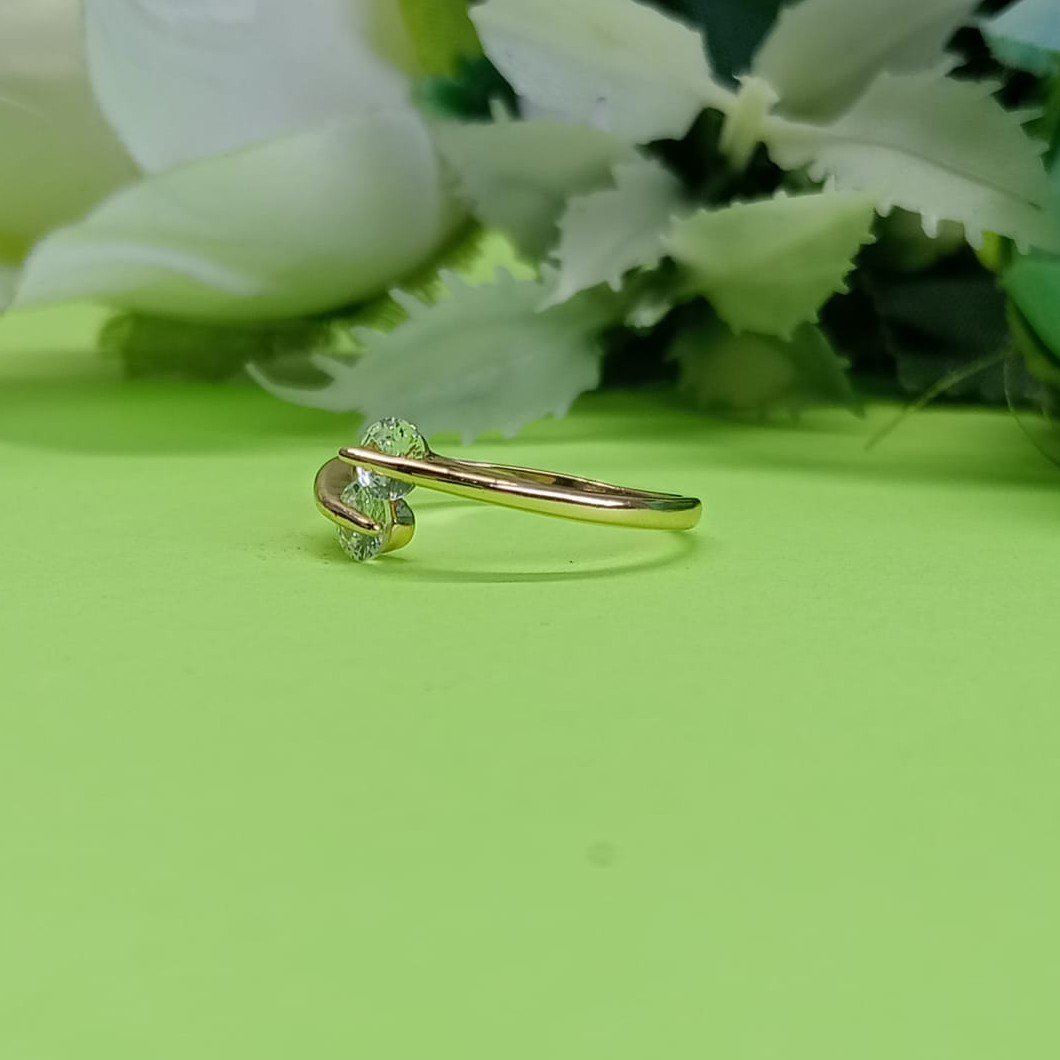 - PRODUCT DETAILS: This gold-tone adjustable ring features a slim open-band design with two clear stones arranged in an overlapping style. The polished finish and minimal detailing provide a balanced appearance suitable for regular wear. The lightweight construction and open-ended design allow easy adjustment for a comfortable fit on different fingers. The simple gold finish pairs well with casual outfits, office attire, and occasion wear. This minimalist ring can be worn on its own or combined with other jewelry for layered styling and is suitable for daily use or gifting.