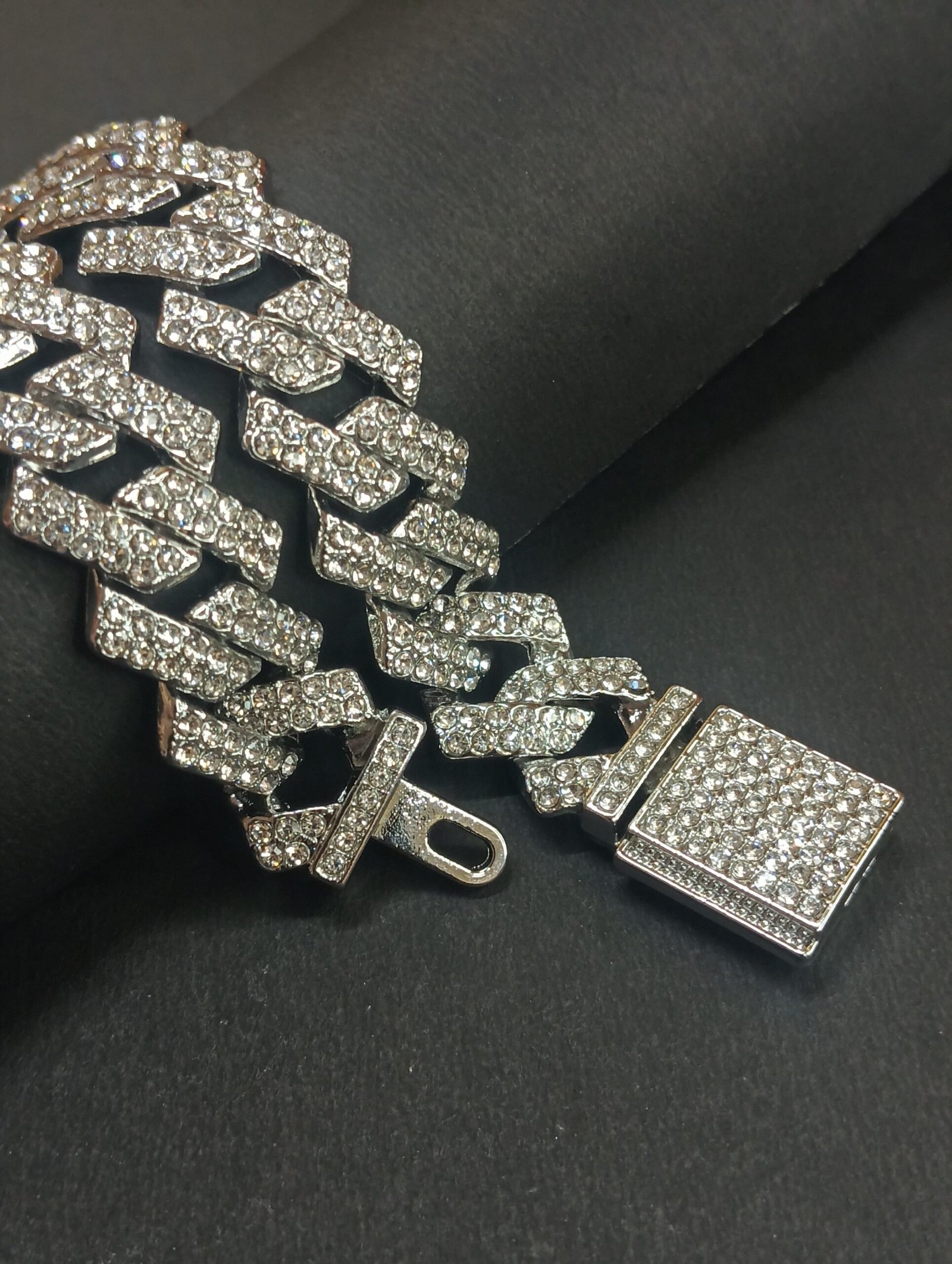 - PRODUCT DETAILS: A bold and lustrous men’s bracelet, elegantly studded with sparkling AD stones for a luxurious touch. Designed for sophistication and style, this statement piece enhances any look with its radiant shine and timeless appeal. Perfect for both formal and casual wear.