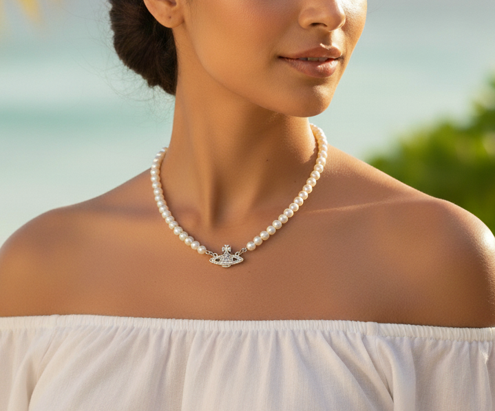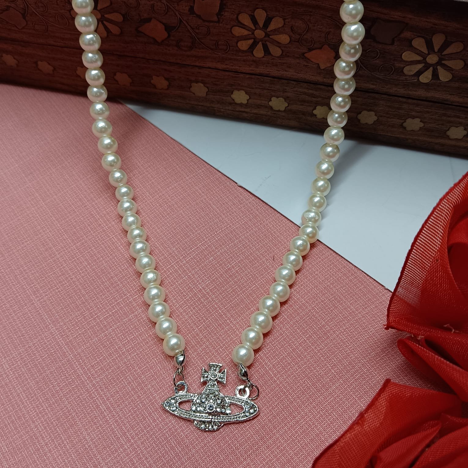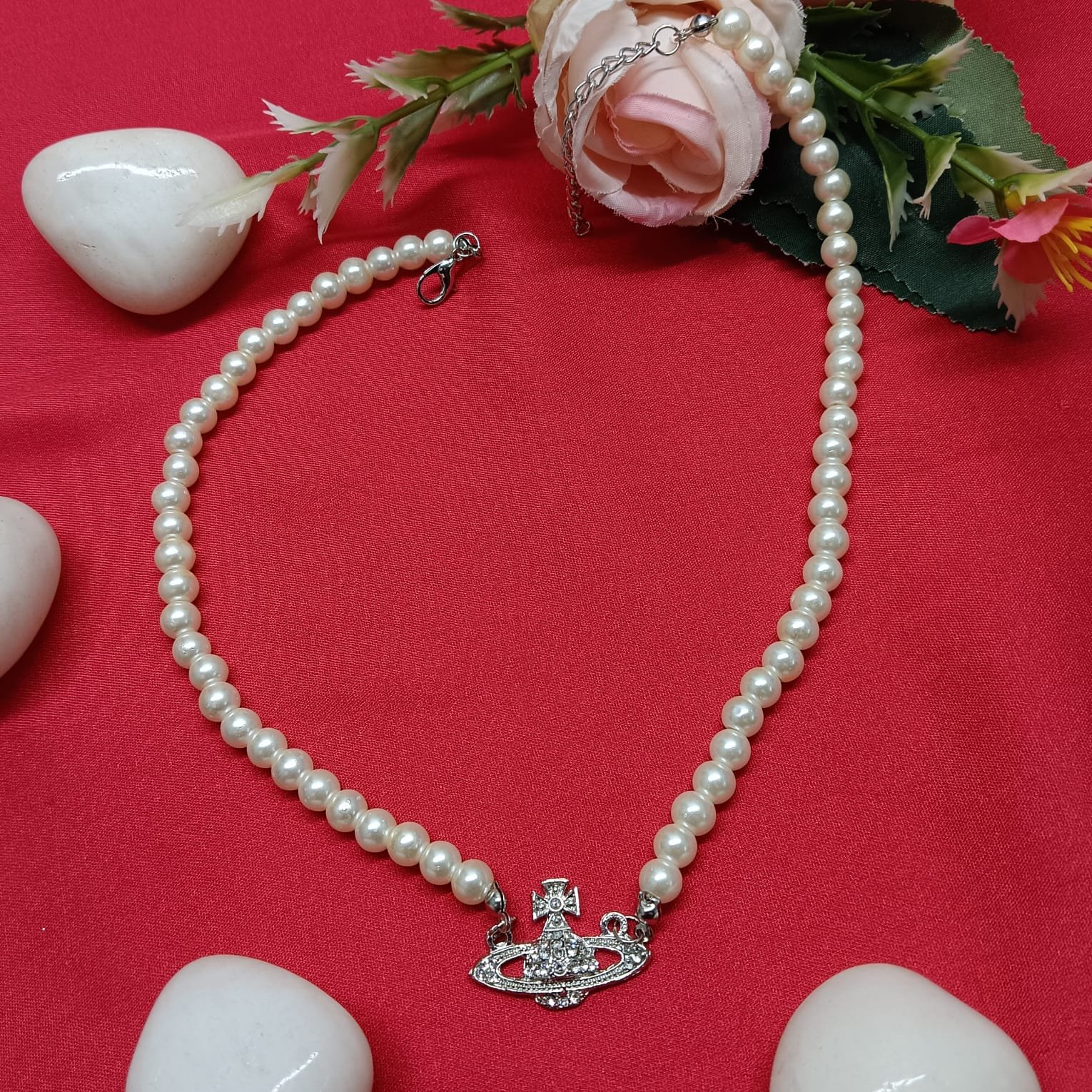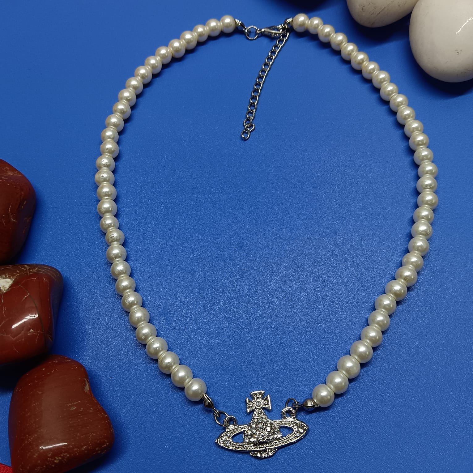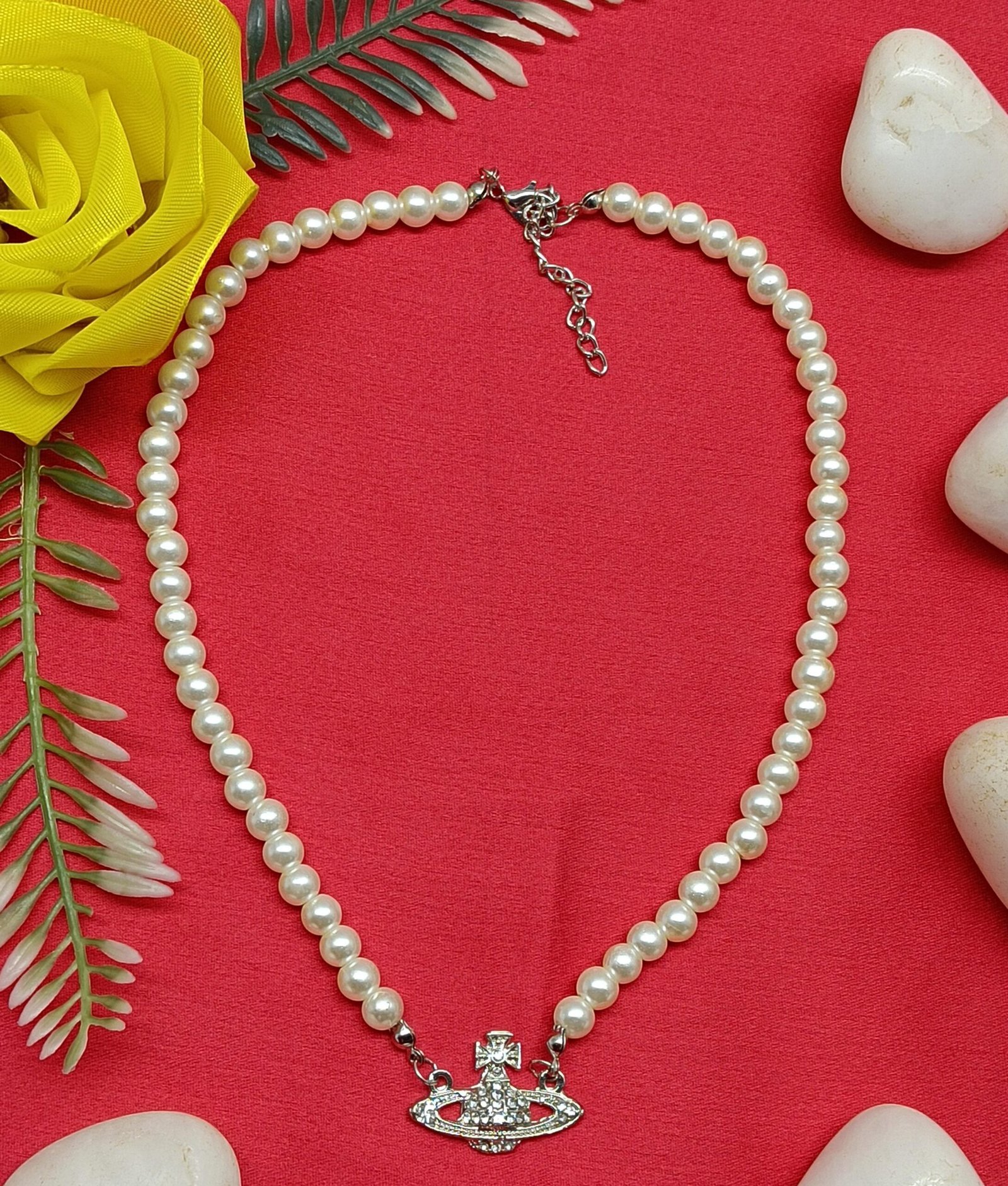 - PRODUCT DETAILS: A refined fusion of grace and edgy flair, this single-row pearl pendant draws inspiration from punk-luxe fashion. It features a string of radiant simulated pearls finished with a silver-tone Orb-inspired pendant encrusted with sparkling crystals. Designed without a traditional chain, the pearls themselves form the complete pendant. Finished with a lobster clasp fastening, it offers both comfort and security, making it a versatile accessory for both day and evening looks.