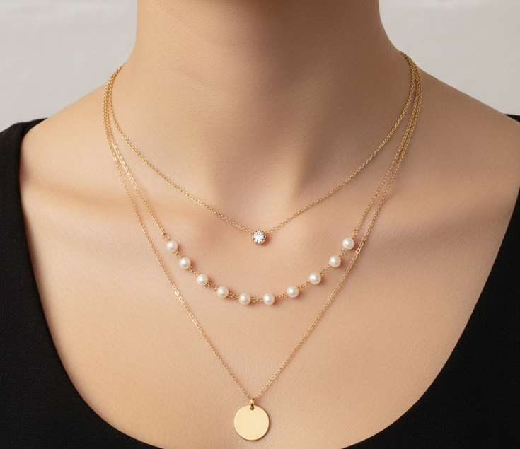 Multi-Layered Pendant for Women and Girls | Stylish Rose gold Layered Jewelry | Minimalistic Gifts for Birthdays, Anniversaries, and special occasions