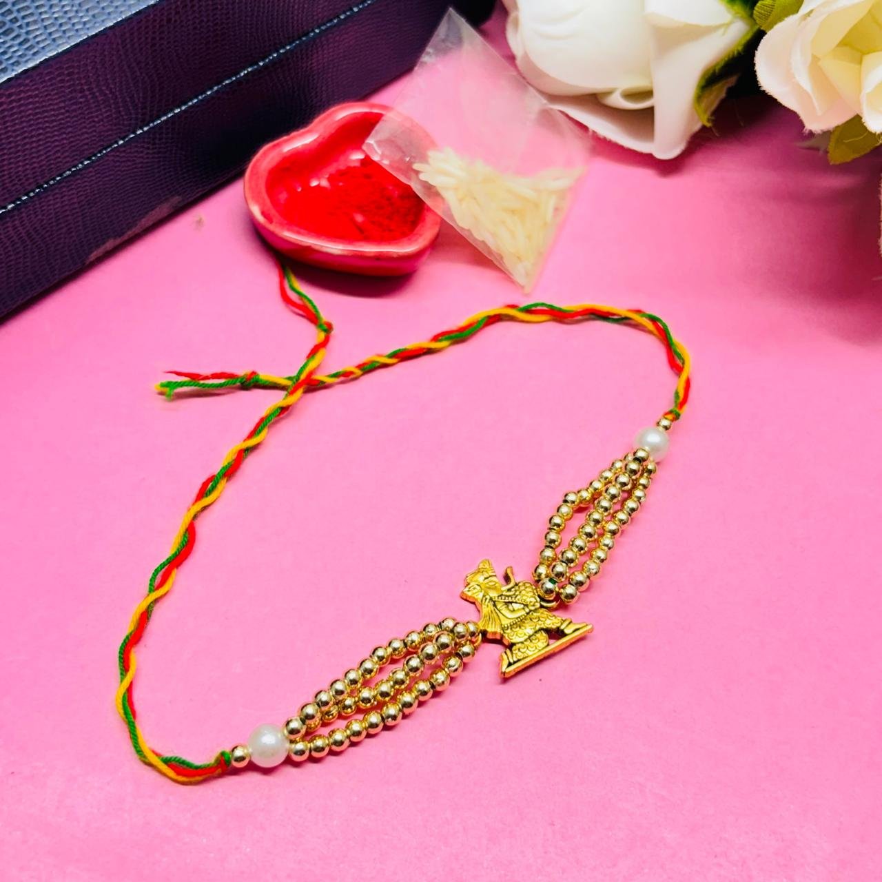 - PRODUCT DETAILS: Celebrate Raksha Bandhan with meaning and tradition using this beautifully crafted Lord Ganesha Rakhi. Designed with radiant gold-toned beads and a detailed Ganesha charm playing the flute, this Rakhi symbolizes love, protection, and spiritual harmony. The multicolor thread adds a festive touch while ensuring a soft and comfortable fit on the wrist. Whether for your elder brother, younger sibling, or as a spiritual keepsake, this Rakhi is a perfect blend of Indian culture and contemporary elegance. Ideal for Raksha Bandhan celebrations, gift hampers, or as a special gesture of sibling love, this Rakhi carries blessings in every detail.