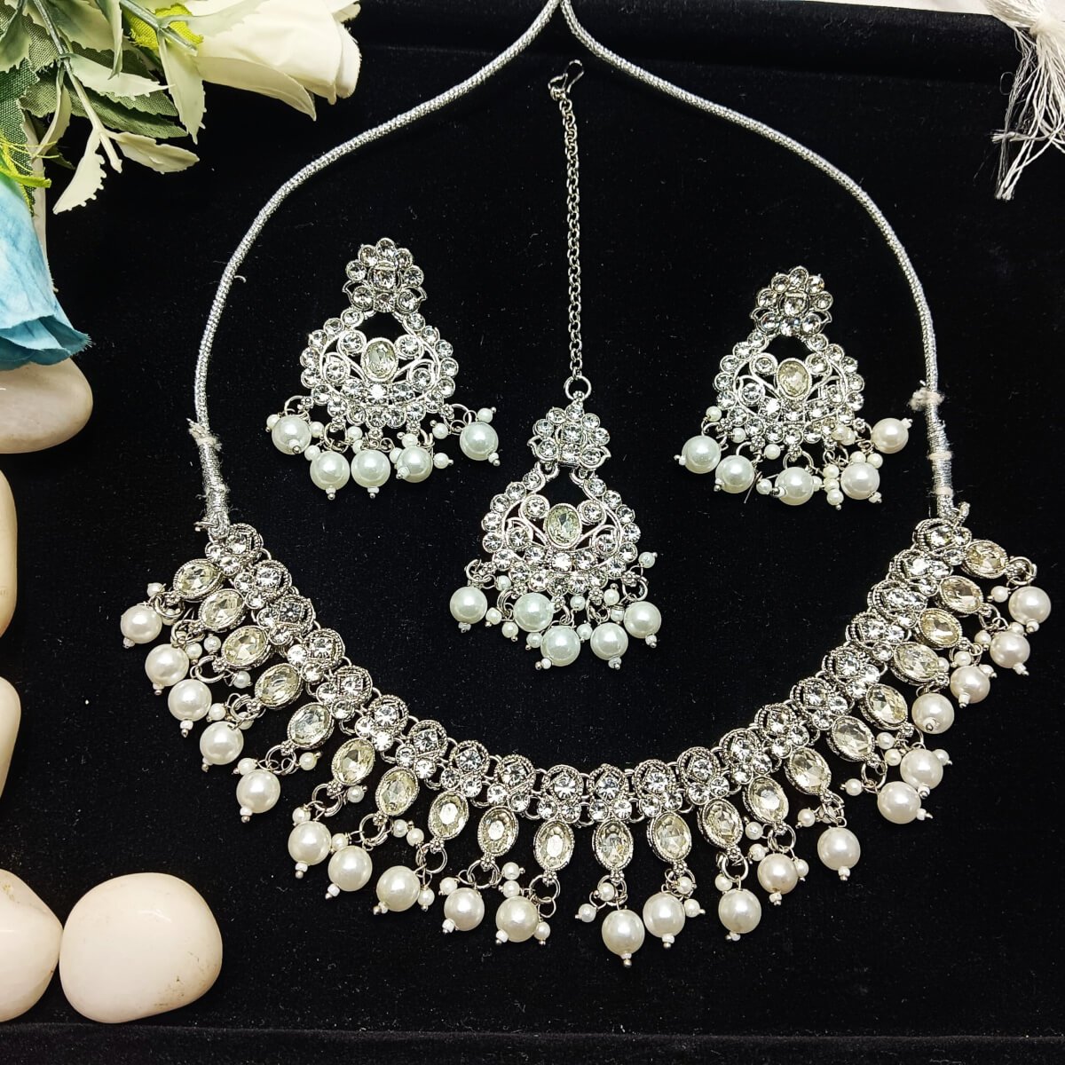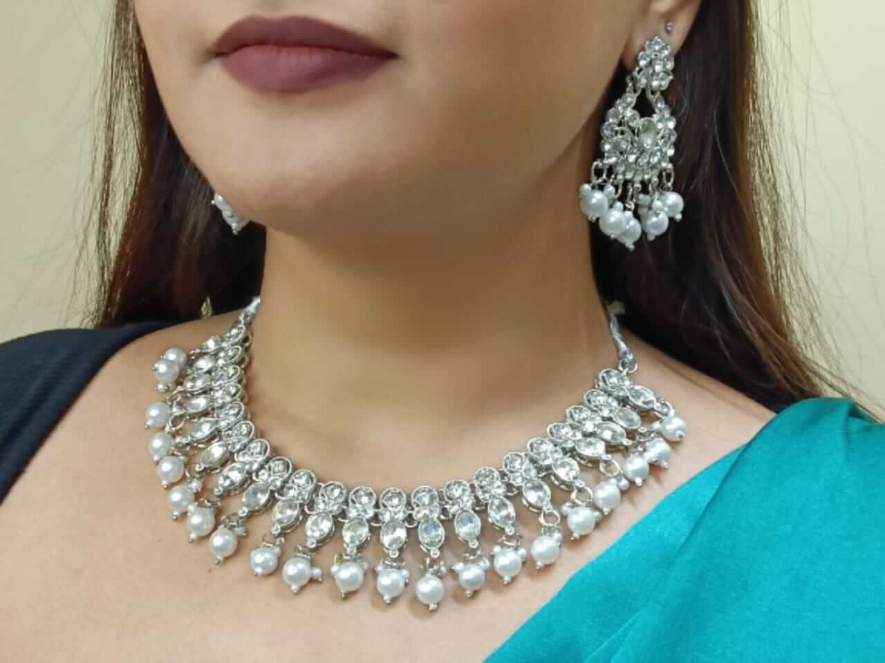 Tags: Adjustable necklace, Cubic zirconia jewelry, Diwali, Eid, Eid jewelry, Ethnic necklace, Ethnic necklace sets, Pearl necklace, Pearl set, Silver-Toned necklace sets, Stone necklace, Victorian collection, Wedding necklace
