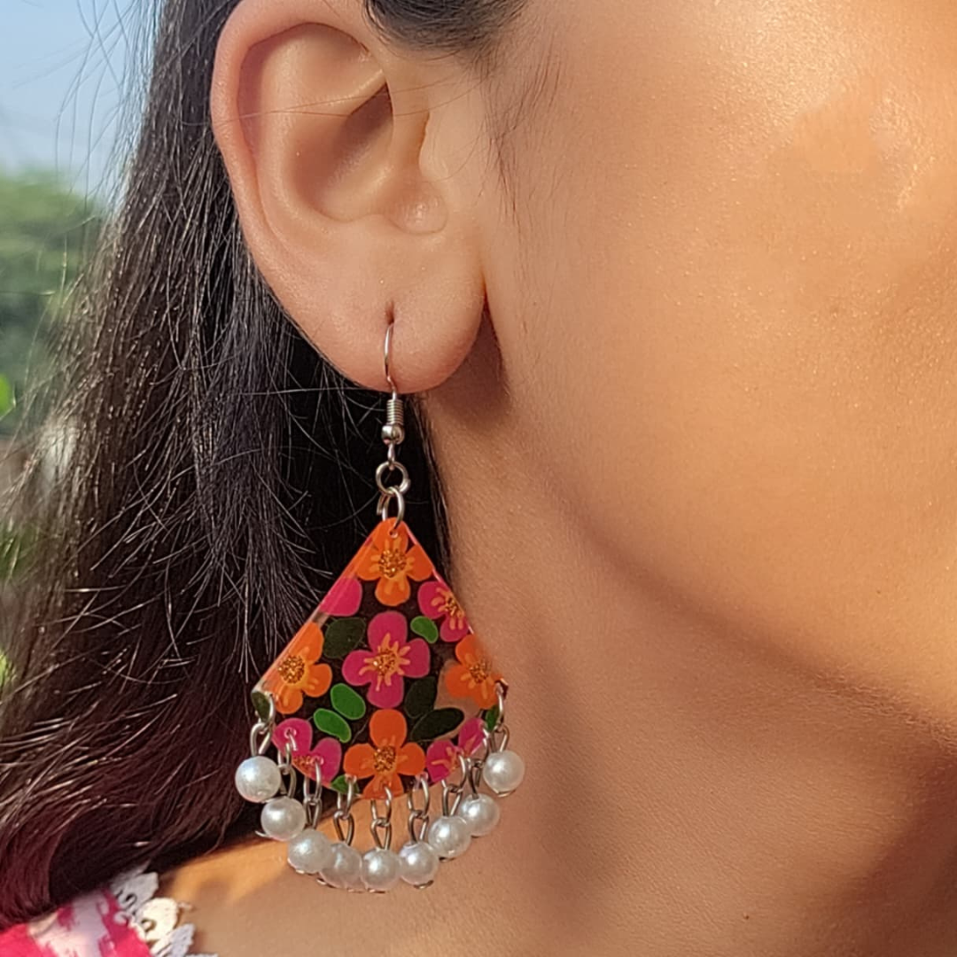 Triangle Floral Dangle Earrings for Women| Handmade Boho Statement Jewelry | Lightweight Ethnic & Festive Earring