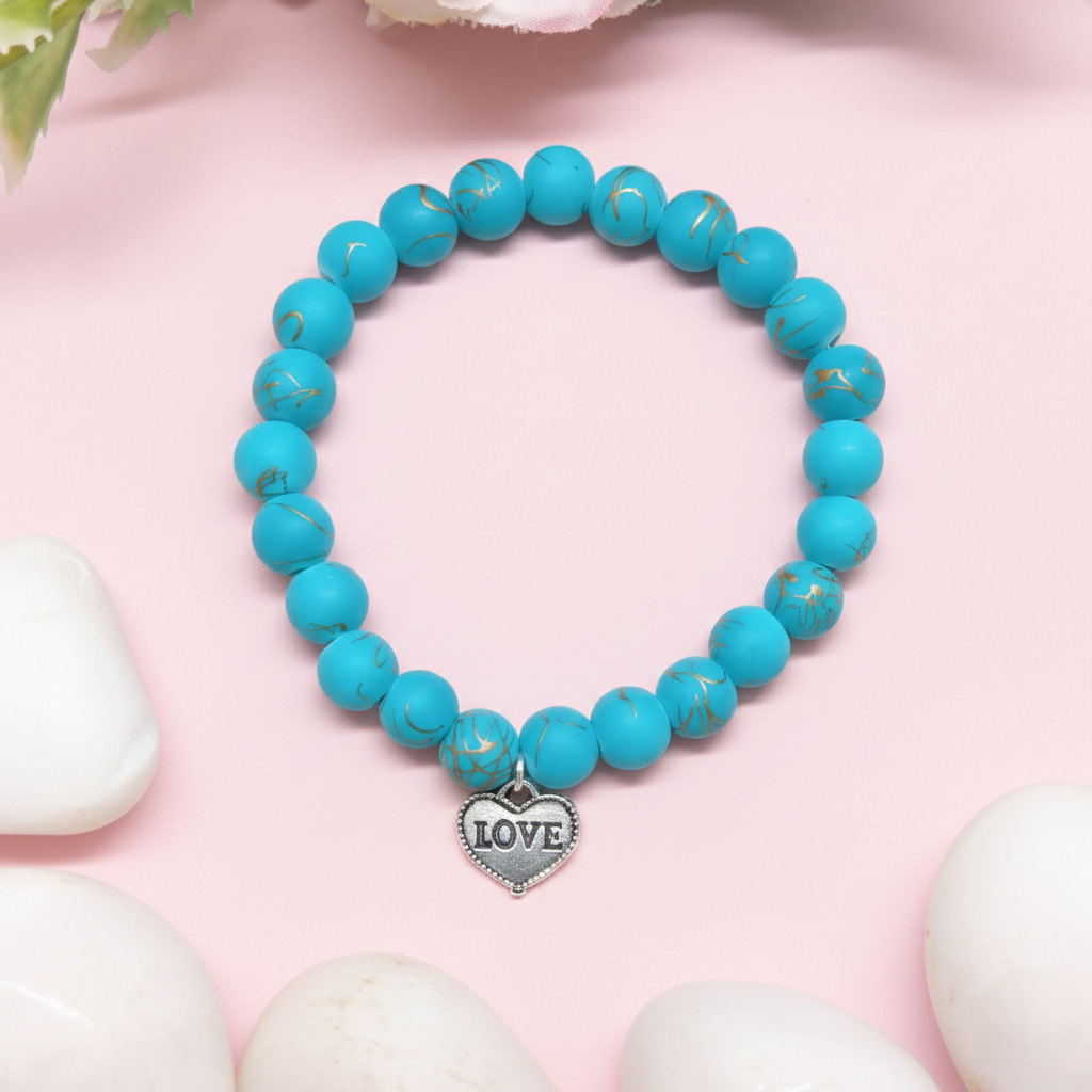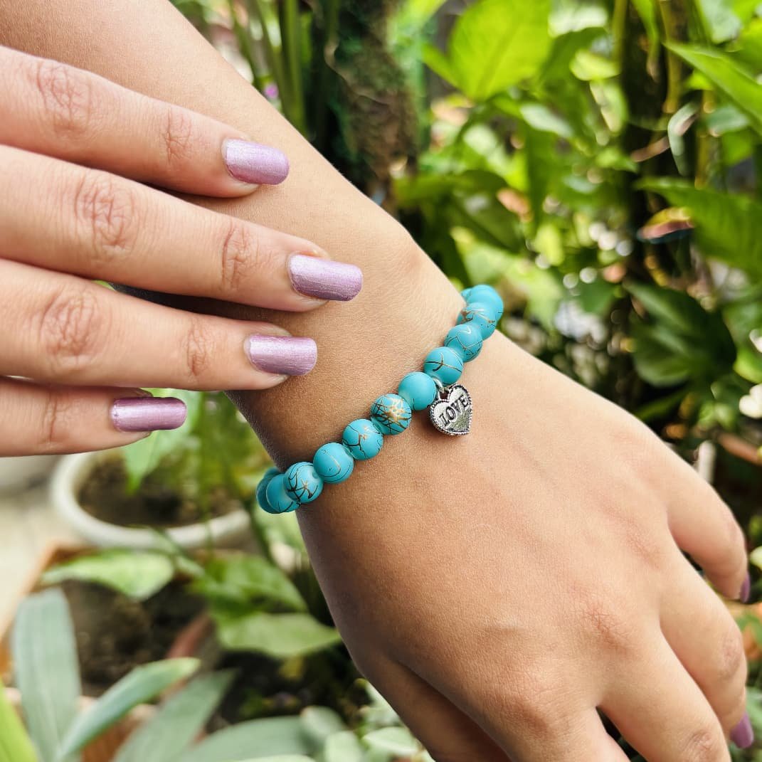 Turquoise Beaded Bracelet with Heart Charm for Women and Girls | Suitable for Ceremonies , Gifting , Everyday , Casual Or Special Occasions