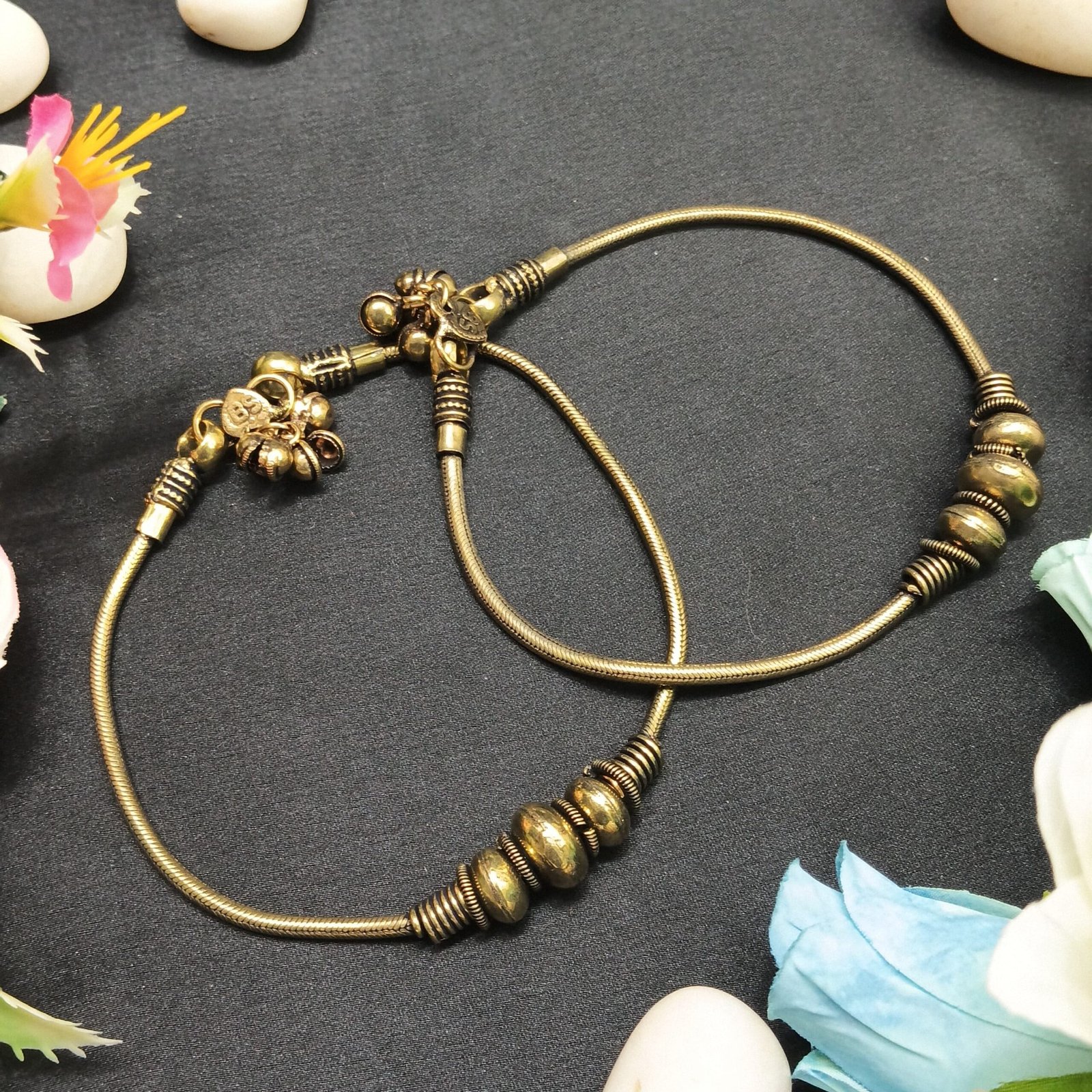 - PRODUCT DETAILS: These NIPSTec intricately designed anklets showcase a vintage-inspired aesthetic, crafted from brass or a gold-toned metal for an elegant and timeless appeal. Featuring a circular, open-ended design, each anklet is adorned with unique decorative elements that enhance its antique charm. One anklet is embellished with delicate floral designs at the ends, adding a touch of grace and femininity, while the other features segmented metallic beads along the curve, giving it a bold yet sophisticated look. Reminiscent of mid-20th century jewelry, possibly from the 1960s, these anklets exude a classic charm that blends beautifully with both traditional and modern outfits. Designed for festivals, weddings, cultural events, or everyday wear, these anklets add a refined touch to any ensemble, making them a versatile and statement-worthy accessory for women who appreciate vintage elegance.