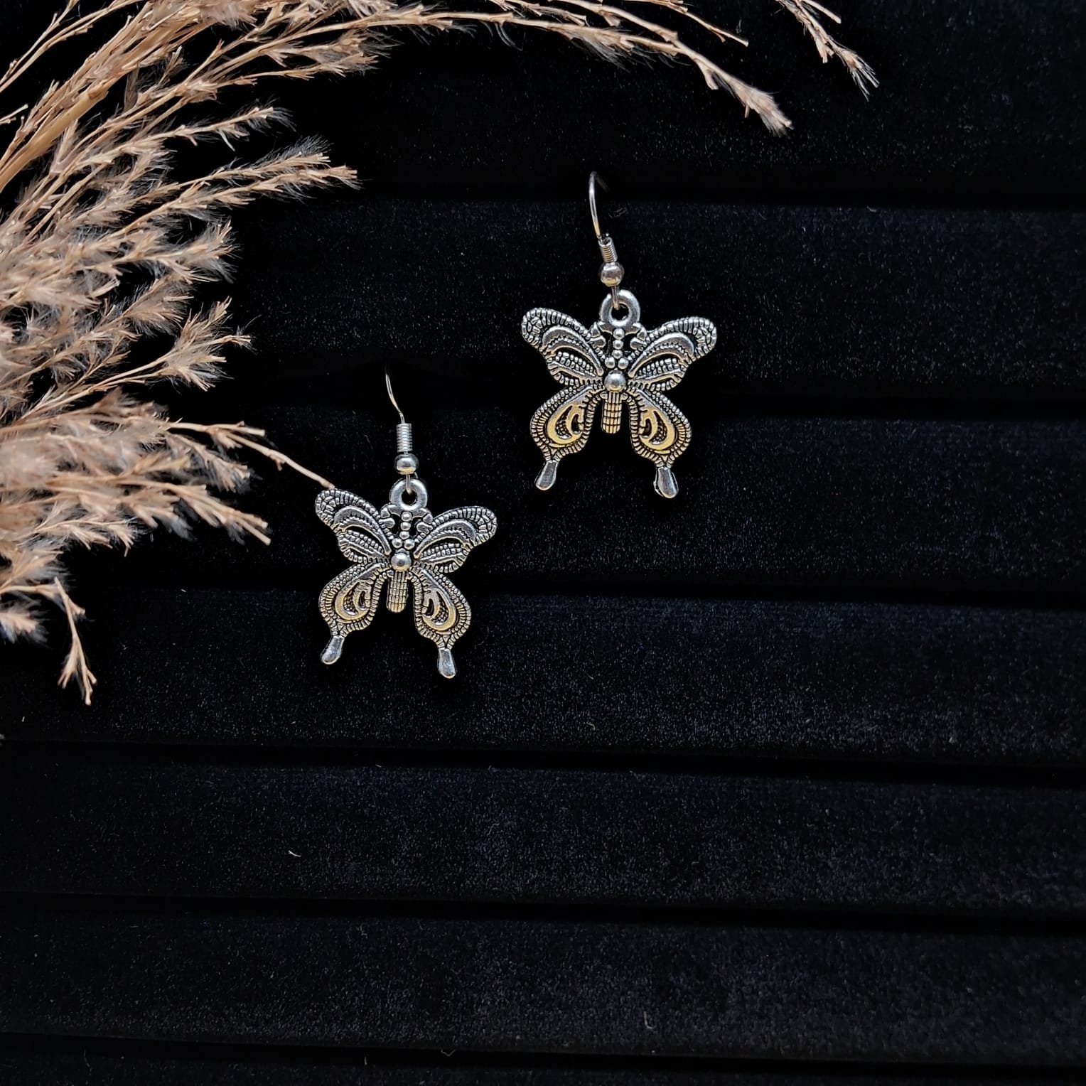 - PRODUCT DETAILS: Handcrafted antique silver‑tone earrings featuring intricately detailed butterfly filigree suspended from classic French‑hook wires for graceful movement; lightweight and airy, these bohemian-chic dangles bring whimsical elegance to both everyday wear and special