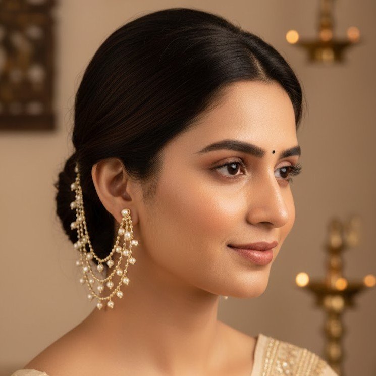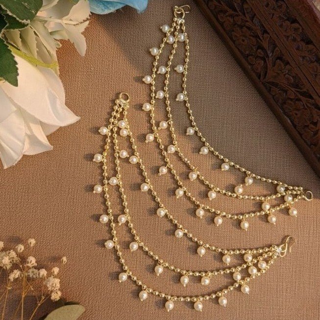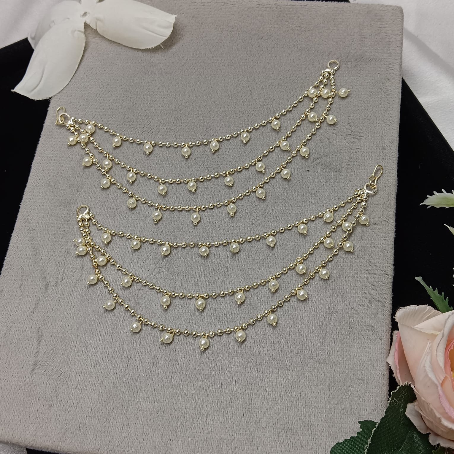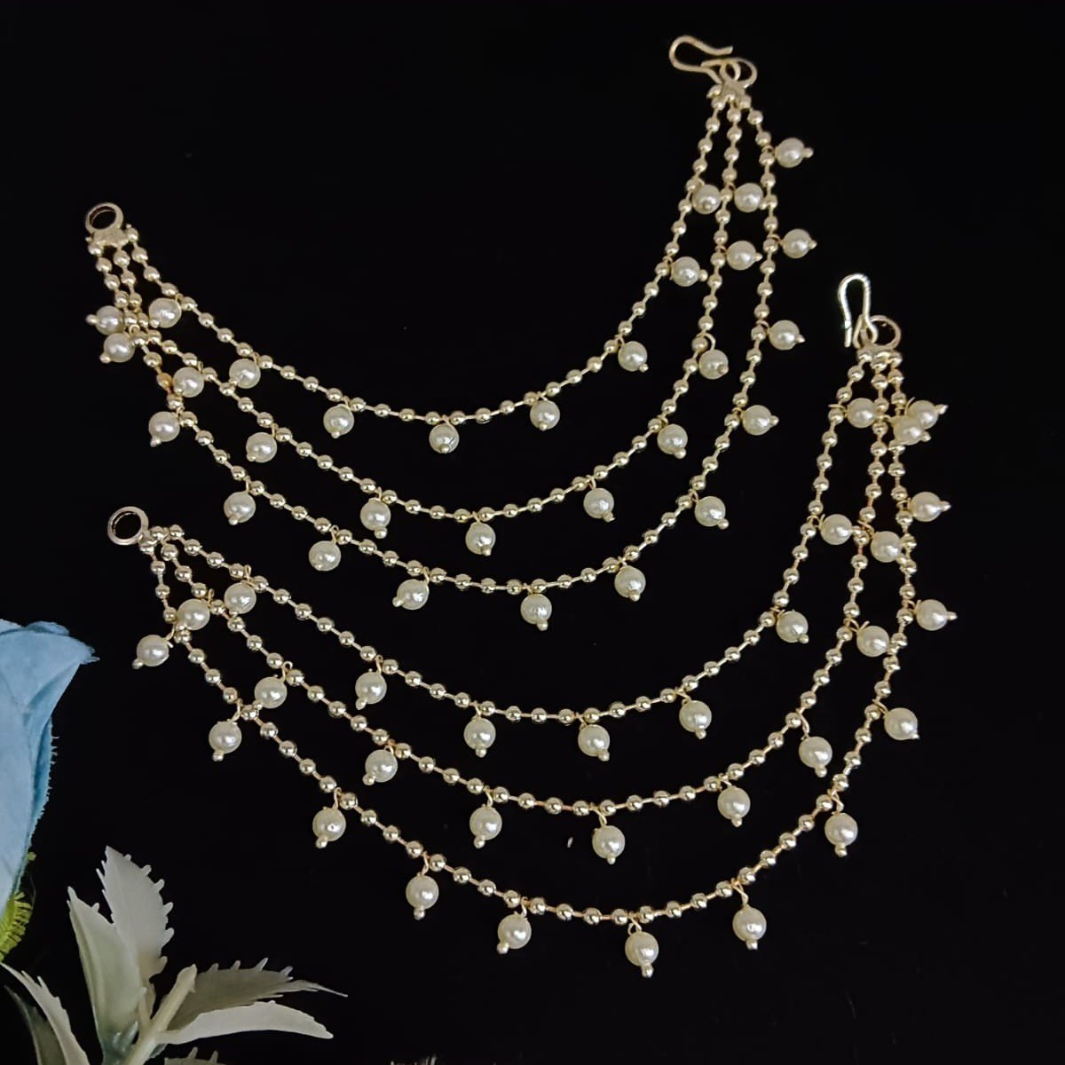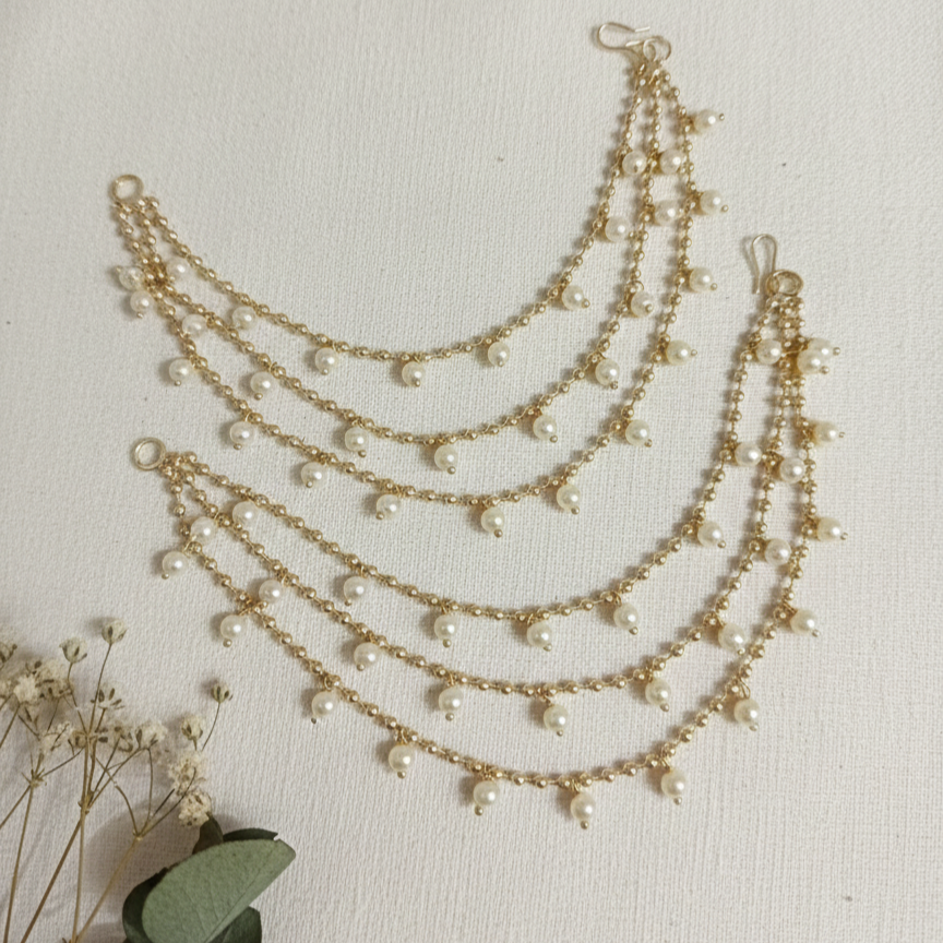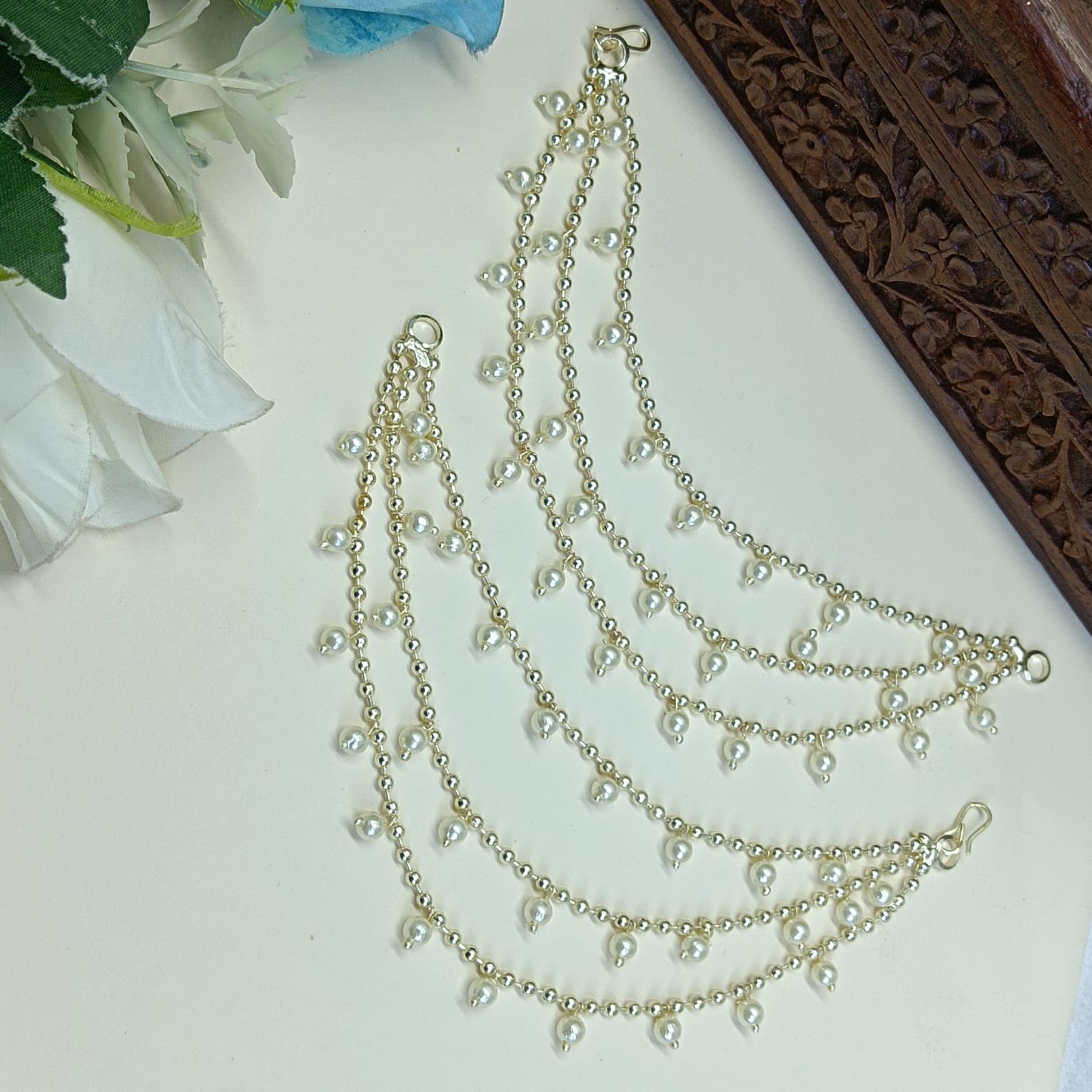 White Pearl Layered Ear Chain Accessory for Women|Elagant & Graceful Design|Multi-Strand Traditional Jewelry for Saree, Lehenga & Festive Wear