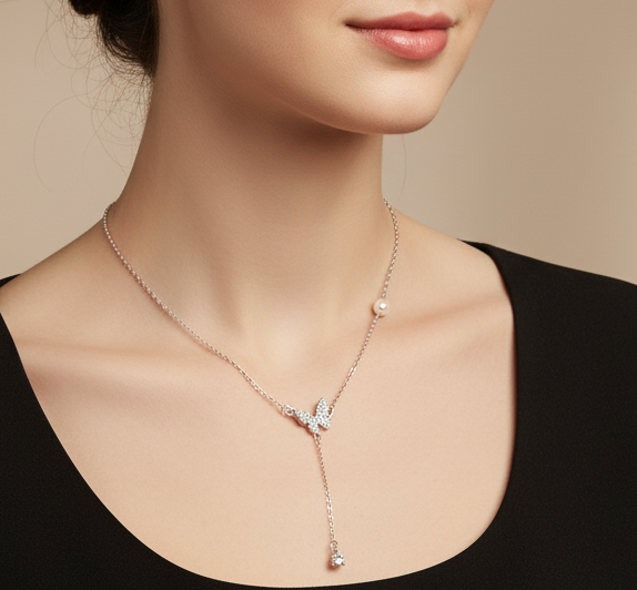 Y-style Butterfly Necklace for Women and Girls | Statement Silver-tone Jewelry for Women| Jewelry for Everyday, Formal, Gifting , Events & Other Occasions|